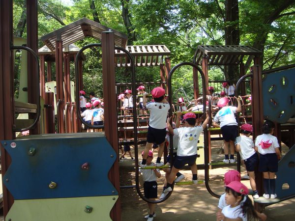 広場では、滑り台やアスレチック等の遊具で遊びました。